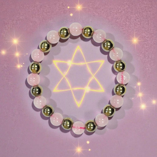 рд░рд╛рдЬ рдпреЛрдЧ рдмреНрд░реЗрд╕рд▓реЗрдЯ (Raj Yog Bracelet | Rose Quartz ├Ч Pyrite)