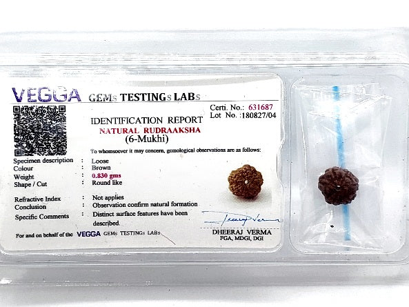 छह मुखी रुद्राक्ष को भगवान कार्तिकेय (शिव पुत्र) का स्वरूप माना गया है। यह रुद्राक्ष एक ओर वैराग्य, संयम और आत्म-नियंत्रण का प्रतीक है, तो दूसरी ओर प्रेम, कला और सौंदर्य की ऊर्जा से भी युक्त है।