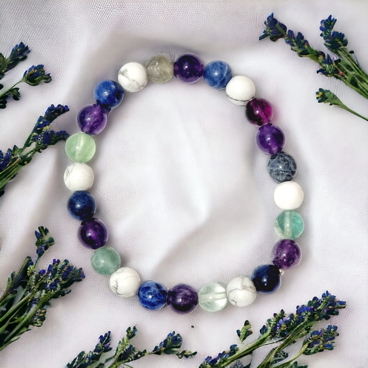 рдпрд╣ рд╡рд┐рд╢реЗрд╖ рдХреНрд░рд┐рд╕реНрдЯрд▓реНрд╕ рд╕реЗ рдмрдирд╛ рдмреНрд░реЗрд╕рд▓реЗрдЯ рдЖрдкрдХреЗ рдзреНрдпрд╛рди, рд╕реНрдорд░рдг рд╢рдХреНрддрд┐ рдФрд░ рдорд╛рдирд╕рд┐рдХ рд╕реНрдкрд╖реНрдЯрддрд╛ рдХреЛ рдмрдврд╝рд╛рддрд╛ рд╣реИред Green Fluorite, Sodalite, Howlite рдФрд░ Amethyst рдорд┐рд▓рдХрд░ рдПрдХ рдРрд╕рд╛ рдКрд░реНрдЬрд╛ рдХреНрд╖реЗрддреНрд░ рдмрдирд╛рддреЗ рд╣реИрдВ рдЬреЛ рдЖрдкрдХреЛ рдмреЗрд╣рддрд░ рддрд░реАрдХреЗ рд╕реЗ рдкрдврд╝рд╛рдИ рдореЗрдВ рдорджрдж рдХрд░рддрд╛ рд╣реИ рдФрд░ рддрдирд╛рд╡ рдХреЛ рдХрдо рдХрд░рддрд╛ рд╣реИред