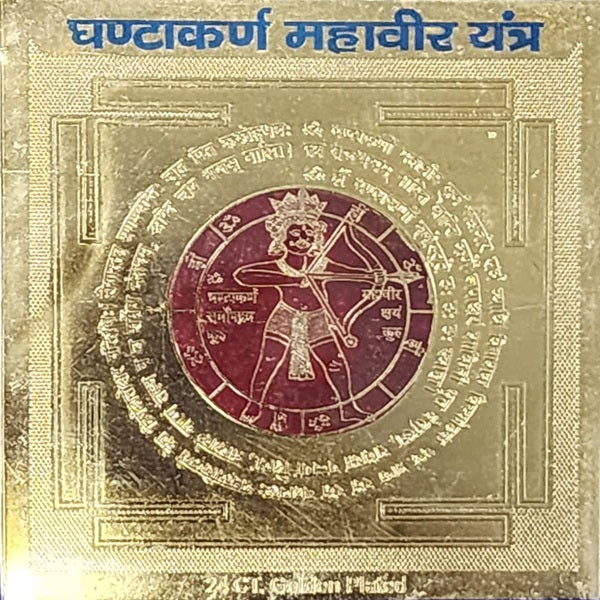 सुरक्षा के लिए श्री घंटाकर्ण महावीर यंत्र की पूजा की जाती है। श्री घंटाकर्ण यंत्र दुर्भाग्य को दूर करता है और कुछ ही दिनों में आपके जीवन में समृद्धि और खुशियाँ लाता है। श्री घंटाकर्ण महावीर एक रक्षक जैन देवता हैं। वह श्रीनगर के तुंगभद्र या महाबल नामक राजा थे। वह अपने समय में हिमालय राजवंश के राजा और योद्धा थे। उन्होंने धार्मिक लोगों, जातियों और पतिव्रता स्त्रियों तथा अविवाहित लड़कियों की लुटेरों से रक्षा की। वह अपने राज्य के निकट श्री पर्वत पर आने वाले तीर्थयात्रियों को डाकुओं से बचाता है। उन्होंने निर्दोषों की रक्षा के लिए अपने प्राथमिक हथियार, धनुष और तीर का इस्तेमाल किया और उनके पास एक भारी गदा थी।