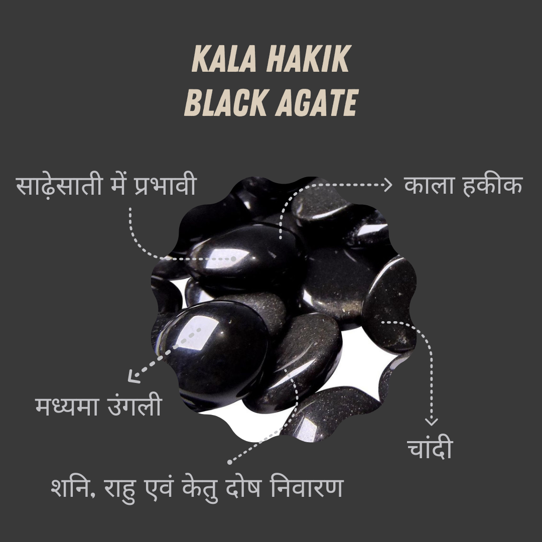 काला हकीक एक अत्यंत प्रभावशाली रत्न है, जो जीवन में आने वाली कठिनाइयों को दूर करने, नकारात्मक ऊर्जा से बचाने और मानसिक शांति प्रदान करने में सहायक माना जाता है। ज्योतिष शास्त्र में इसे शनि, राहु और केतु के दोष निवारण के लिए विशेष रूप से प्रभावी माना गया है।