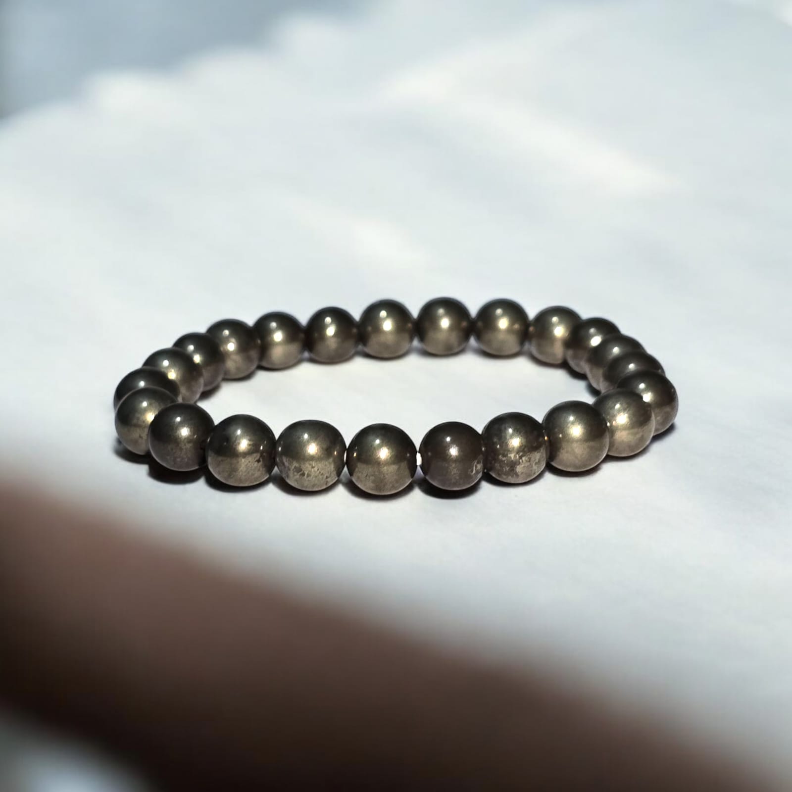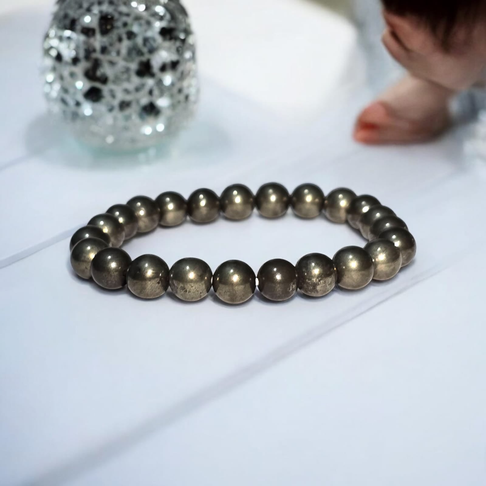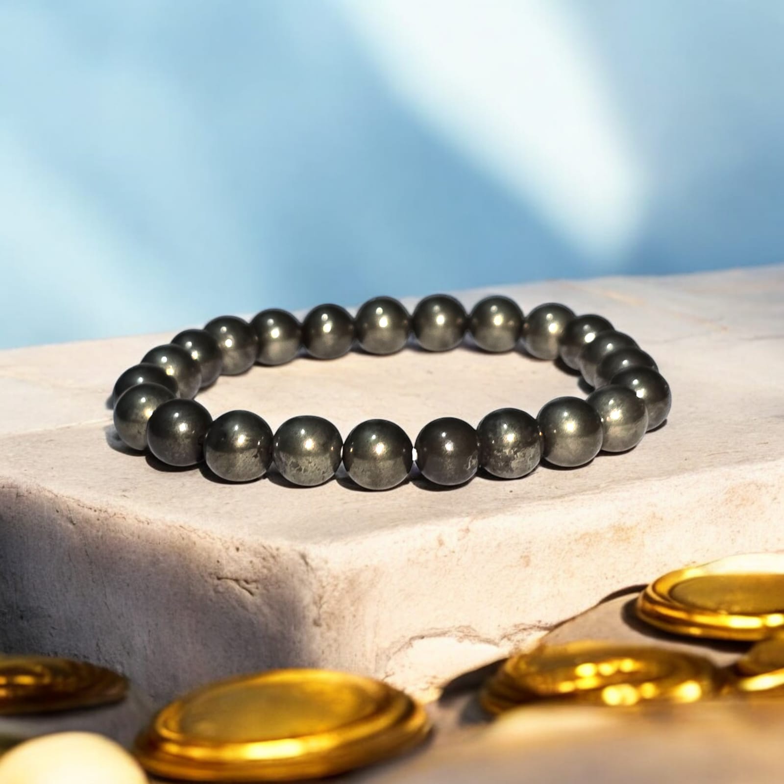 पाइराइट (Pyrite) का नाम ग्रीक शब्द "Pyr" से बना है, जिसका अर्थ "आग" होता है। यह bracelet न सिर्फ आपके स्टाइल को निखारेगा, बल्कि आपके जीवन में धन, सफलता और पॉजिटिव एनर्जी को भी आकर्षित करेगा। 💰✨