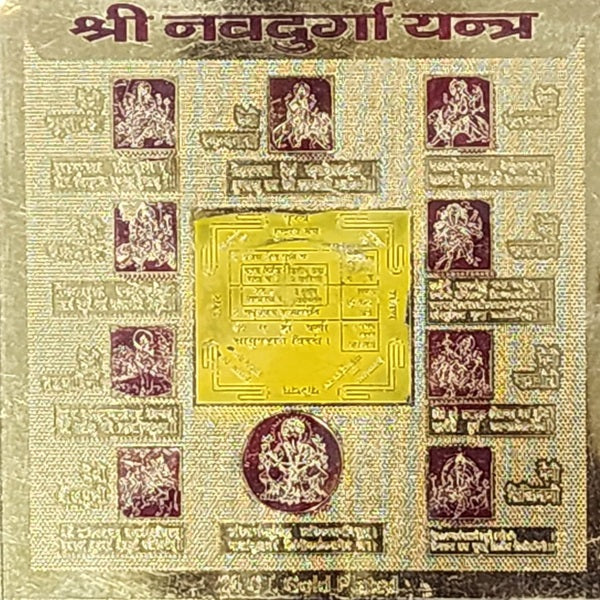 इन नौ रूपों को मिलाकर नवदुर्गा कहा जाता है। पहला रूप है शैलपुत्री। दूसरा स्वरूप ब्रह्मचारिणी है। तीसरा है चंद्र घंटा. चौथा स्वरूप कूष्माण्डा है। पांचवी हैं स्कंदमाता। छठा रूप कात्यायनी है। सातवीं हैं कालरात्रि। आठवां स्वरूप महागौरी का है। और नौवां रूप है सिद्धिदात्री. ऐसा माना जाता है कि जो लोग पूरी श्रद्धा के साथ देवी नवदुर्गा यंत्र के नौ रूपों की पूजा करते हैं उन्हें सुख, धन, स्वास्थ्य और समृद्धि का आशीर्वाद मिलता है।