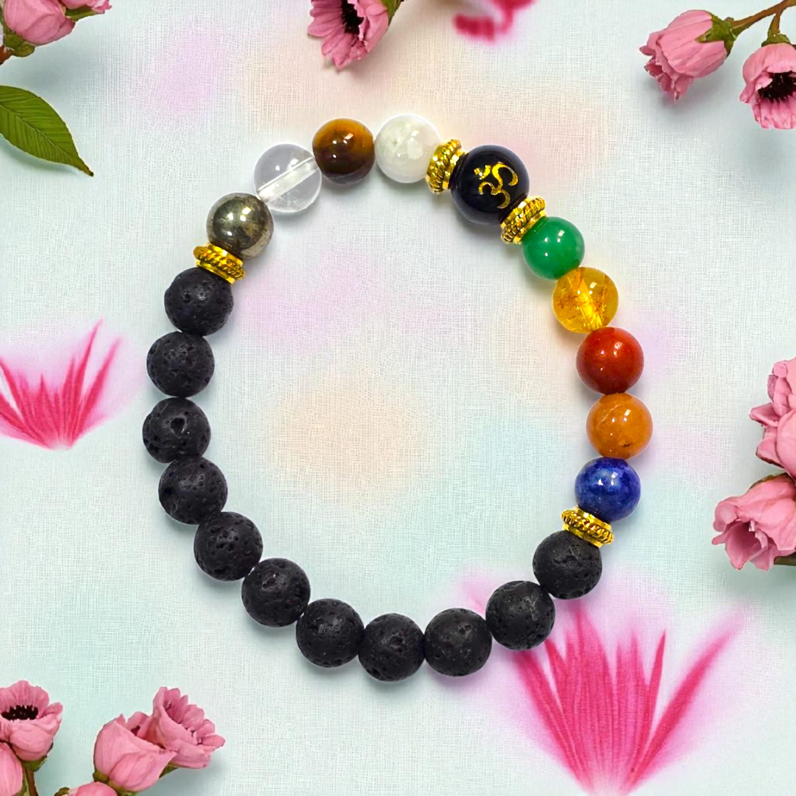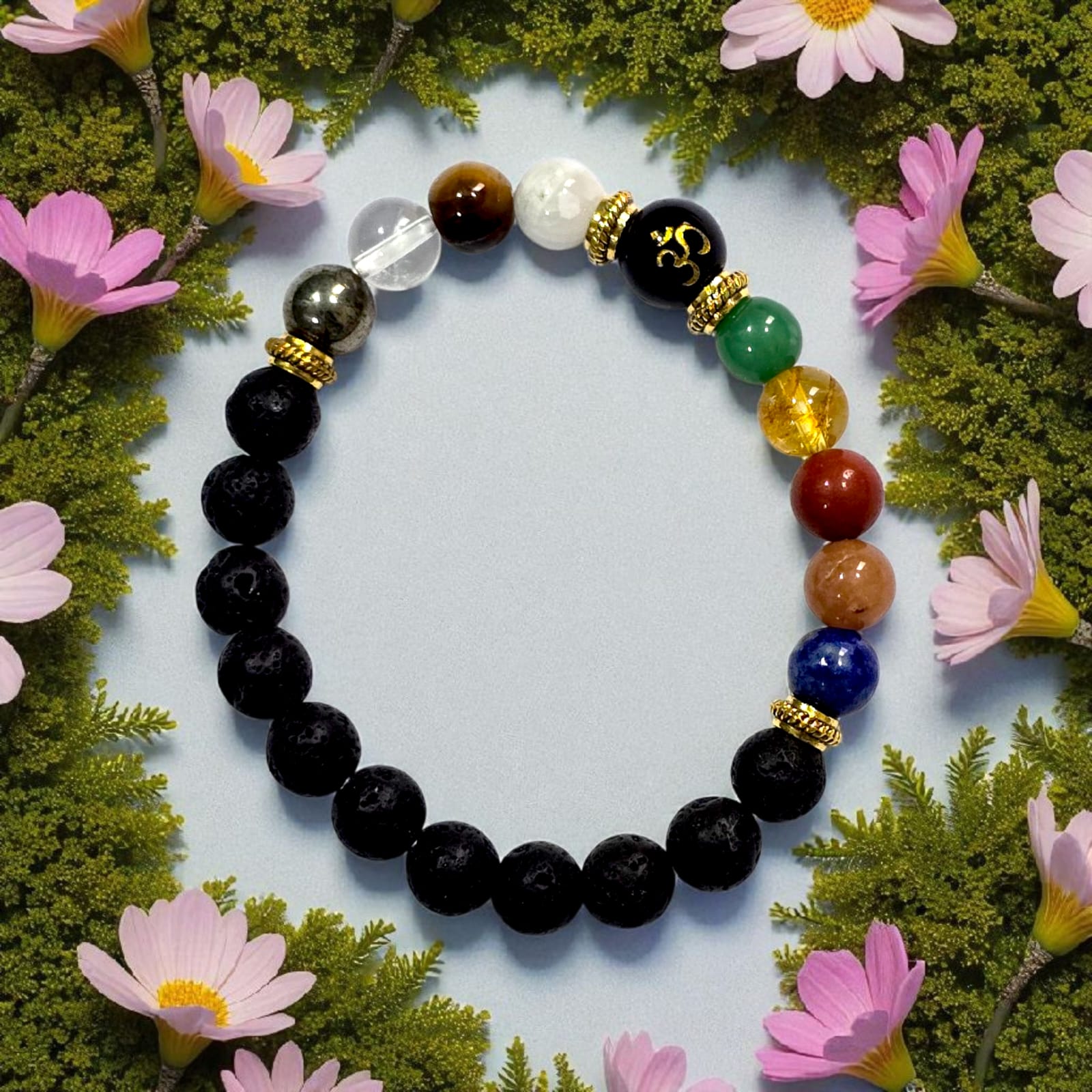 ⚫ लावा स्टोन (Lava Beads) – धरती से जुड़ाव और सुरक्षा।