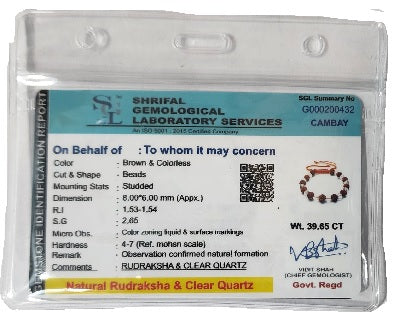 🌿 रुद्राक्ष और क्रिस्टल का संयोजन एक दिव्य ऊर्जा उत्पन्न करता है, जो नकारात्मक प्रभावों और ऊर्जाओं को दूर करने में अत्यंत प्रभावी होता है। क्रिस्टल की चमक और सुंदरता इसे आकर्षक बनाती है, जबकि रुद्राक्ष आध्यात्मिक और मानसिक शांति प्रदान करता है। दोनों मिलकर पहनने वाले को स्वास्थ्य, शिक्षा, करियर, सफलता, आध्यात्मिकता और सुरक्षा में सहायता प्रदान करते हैं।