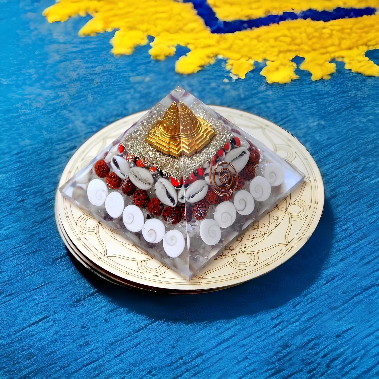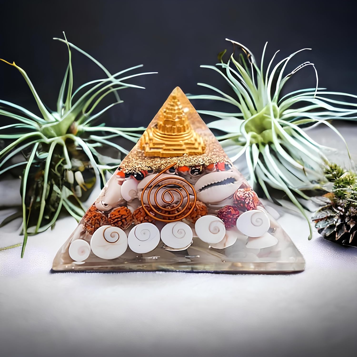 रुद्राक्ष, गोमती चक्र, कौड़ी और श्री यंत्र पिरामिड – समृद्धि और सकारात्मक ऊर्जा का शक्तिशाली संगम
