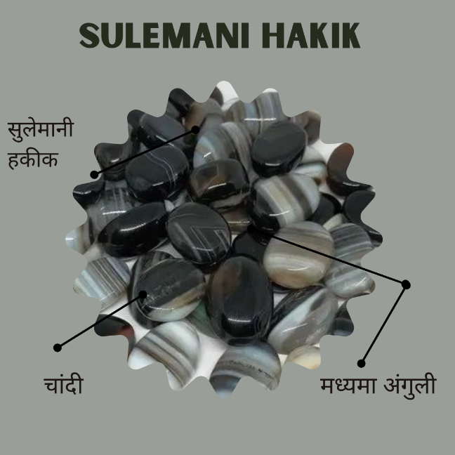 सुलेमानी हकीक (Sulemani Hakik) को भाग्य जागृत करने वाला और बुरी नजर से बचाने वाला पत्थर माना जाता है। यह नकारात्मक ऊर्जा को दूर करता है, मानसिक शांति देता है और आत्मविश्वास बढ़ाता है।